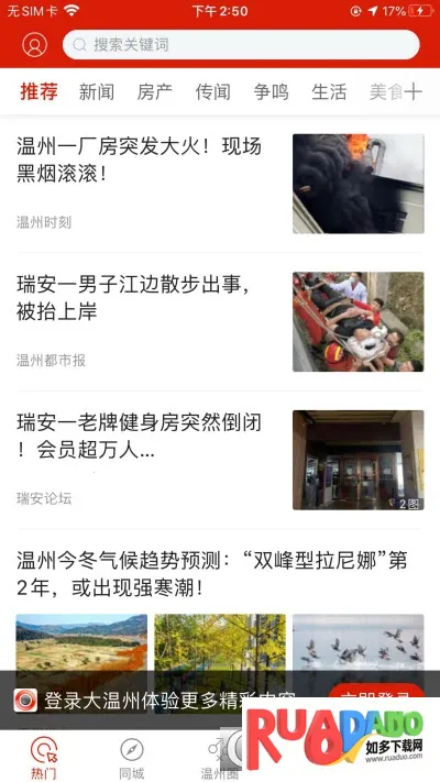 大温州app是温州祥盛文化传播有限公司为温州本地居民打造的新闻资讯平台。能看本地大小事、交流评论,有图文和短视频。还能征婚、购物,提供房价、美食等信息,有多种功能和服务,界面全新改版,使用方便。