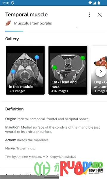 vet Anatomy2026最新版本是一款为相关人士打造的手机软件,功能强大。有海量动物解剖图集与3D模型,涵盖多种动物,图像高清、细节详尽,含多种学习工具,支持多语言,还有模拟考试等特色功能。