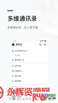 2. 通讯录找人方便,通过组织关联事项,支持多种人员组织形式,基于智能标签和推荐可智能快速找人办事。