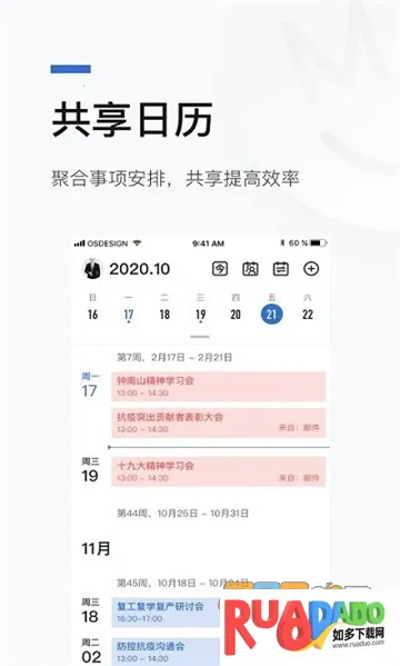 4. 共享日历聚合日程和会议安排,支持文档协同到期提醒,确保工作不遗漏。
