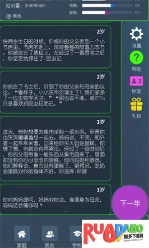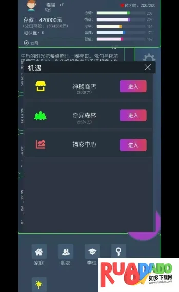 1、玩家可选择三种不同人生路径,起始属性各有特色,如天才、中等水平、起点较低但有特殊能力。