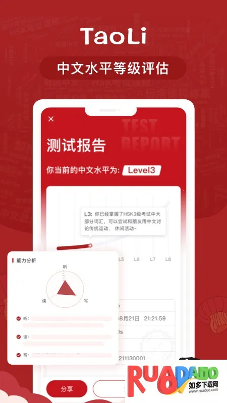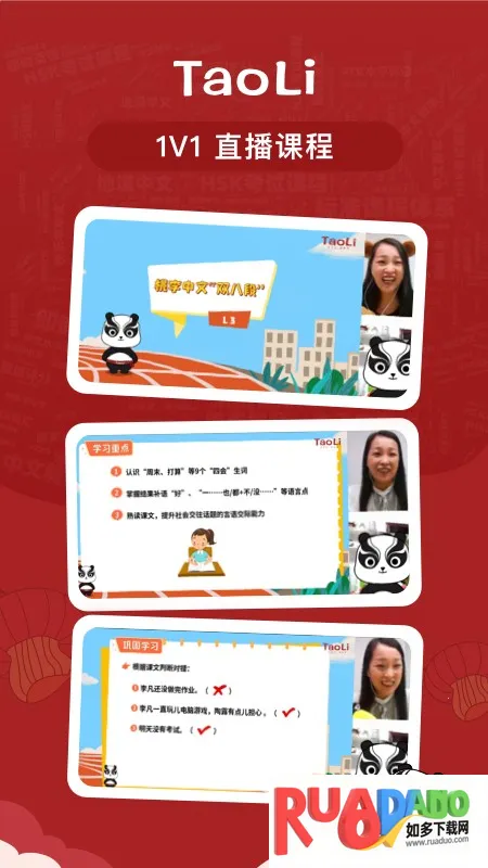 TaoLi是深圳桃李未来科技有限公司为外国友人打造的中文学习平台。有海量优质课程,能智能推送适合内容,含口语跟读评分、词汇练习等功能,还有多种课程及特色模块,覆盖全球多国用户。