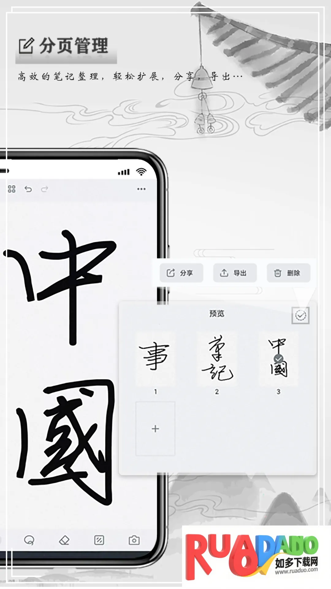 3. 快速导出,可将手写记事分页内容快速导出,提高导出效率。