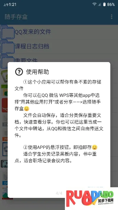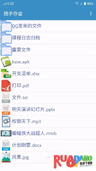 随手存盒是一款超棒的文件管理工具。它能帮咱轻松存储各类文件,不管是从QQ微信等接收的,还是其他软件里的,都能集中管理。有了它,多平台文件零散的烦恼全解决啦!