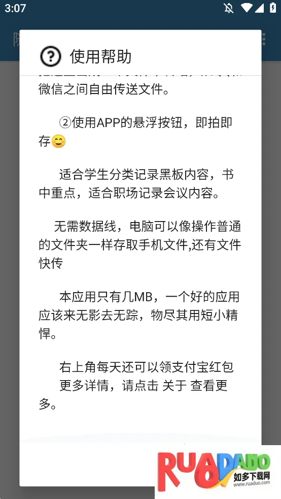 亮点也不少。界面简洁易上手,多种文件格式都支持。悬浮按钮方便即拍即保存重要内容。文件管理和传输速度快,还能跨平台,手机、电脑、平板间文件互传。