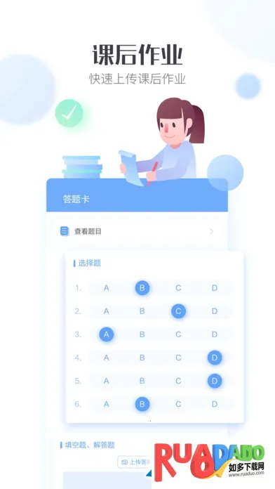 3. 便捷的移动学习管理,通过 APP 可实现学习线上化,题目、笔记、课程、测试一部手机便捷管理。