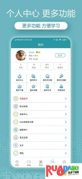 2. 具备专业评测功能,能对你的听力能力打分,找出薄弱点以便及时补充。