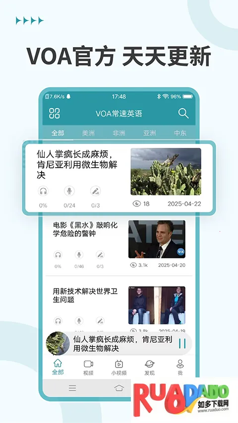 2. 优质资源:来自VOA美国之音的原版音频,经强大编辑团队雕琢。