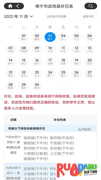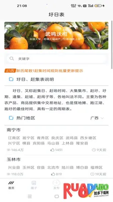 1. 圩日表2025最新版整理了全国各地赶集地点和时期,能帮商户和客户快速赶往下一个集会点。