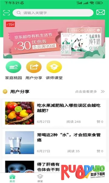 家庭桃源 2026 官方正版是苏州健康产业科技有限公司研发的生活服务软件。提供大量生活资讯,涵盖小常识、妙招等,可在线购买生活用品,下单轻松。有首页、课堂、我的、分享等板块,功能丰富,每天更新推送。