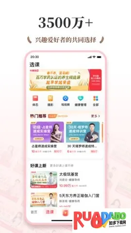 兴趣岛app是成人培训软件,提供多样课程。有千聊精选课,科学学习计划,覆盖多领域。课程由专业师资提供,可试用。适用于成人各学习需求,能随时随地学,还有更新优化及特色功能。