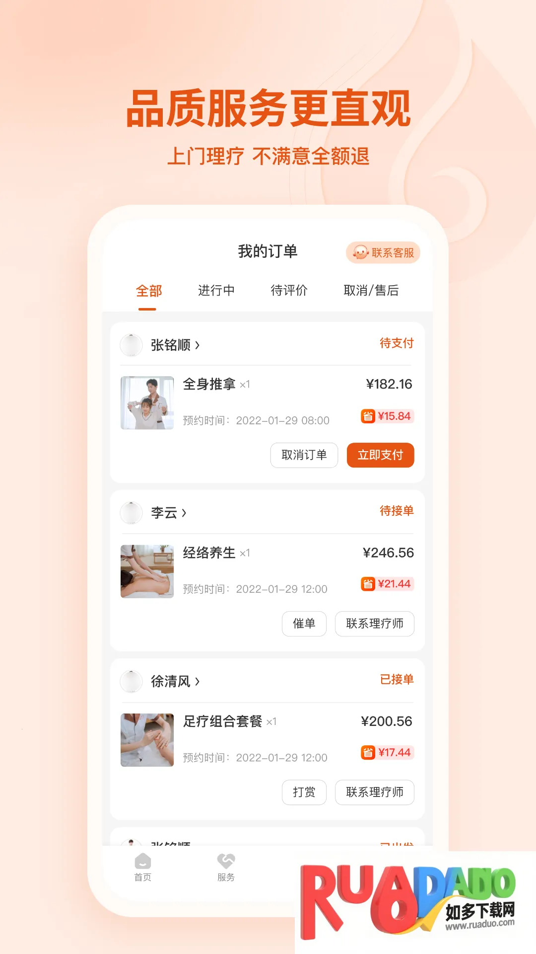 2. 涵盖多种按摩项目,提供丰富理疗师信息,可按偏好挑选预约。