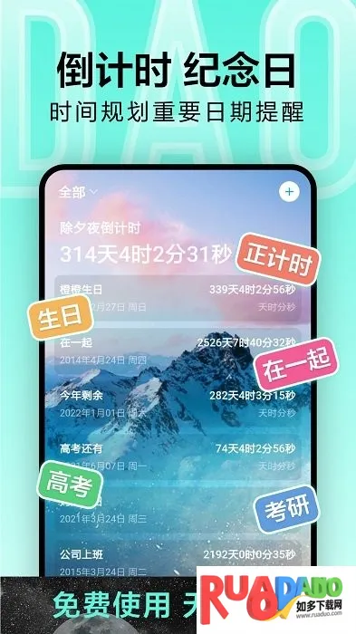 2. 能对重要日期计时,还可完善规划,提升生活和工作效率。