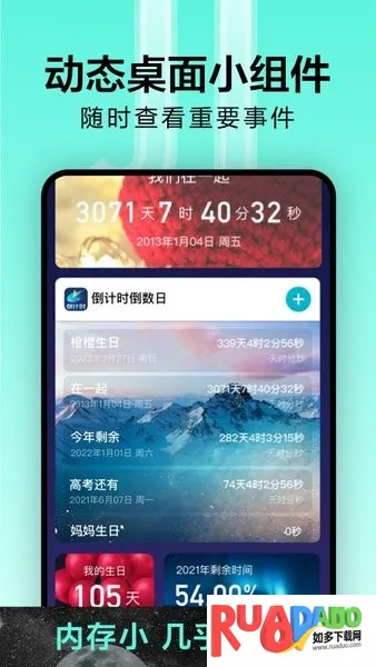 1. 可自定义专属倒计时,不错过重要事情,做足准备。