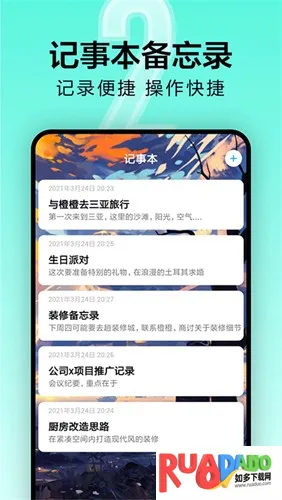 3、支持记事本编辑模式,能清晰规划生活事项,打造详细清单便签并获提醒服务。