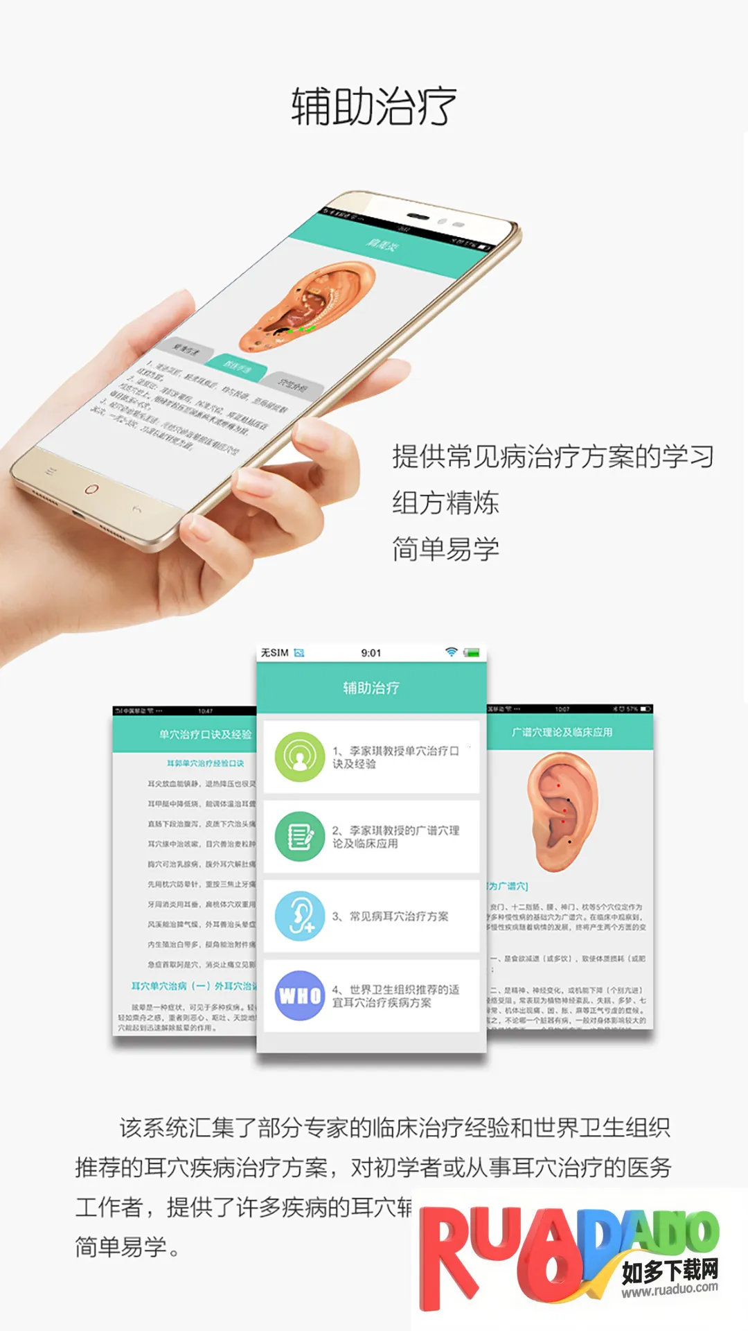 1. 多元化学习资源:提供涵盖耳穴学、中医理论等专业课程,还有多种治疗手法课程,带来全面学习体验。