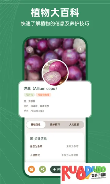 2. 知识全面:拥有超20万种植物资料库,全方位呈现植物知识,从基础属性到文化寓意,满足深度探索需求。