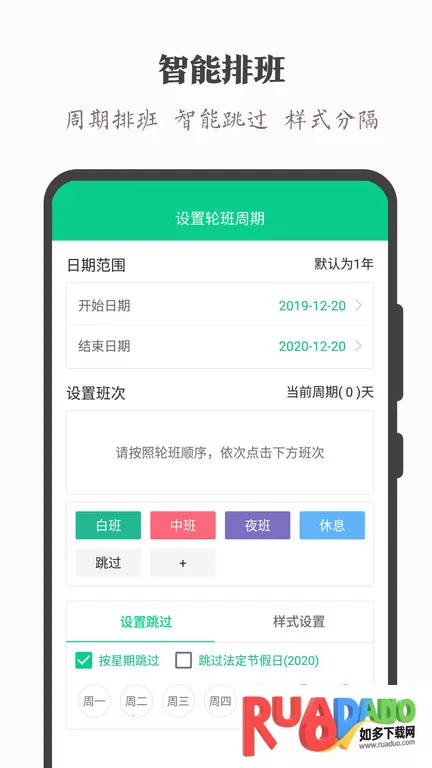 操作简单,有周期和手动两种排班方式,针对不同工作人群,还能自动生成专属班表。
