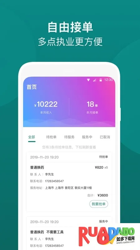 3. 能自由接单,挂靠医疗机构入驻后可设服务区域,按自身安排接不同时间订单。