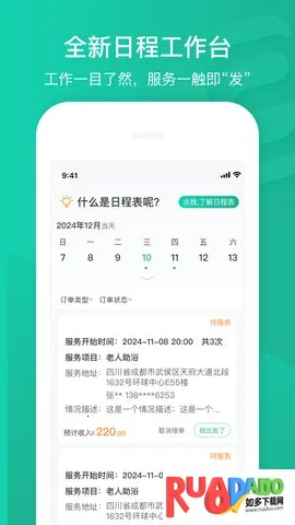 3. 自由的接单选择,挂靠医疗机构后能设服务区域,按工作安排接不同订单。
