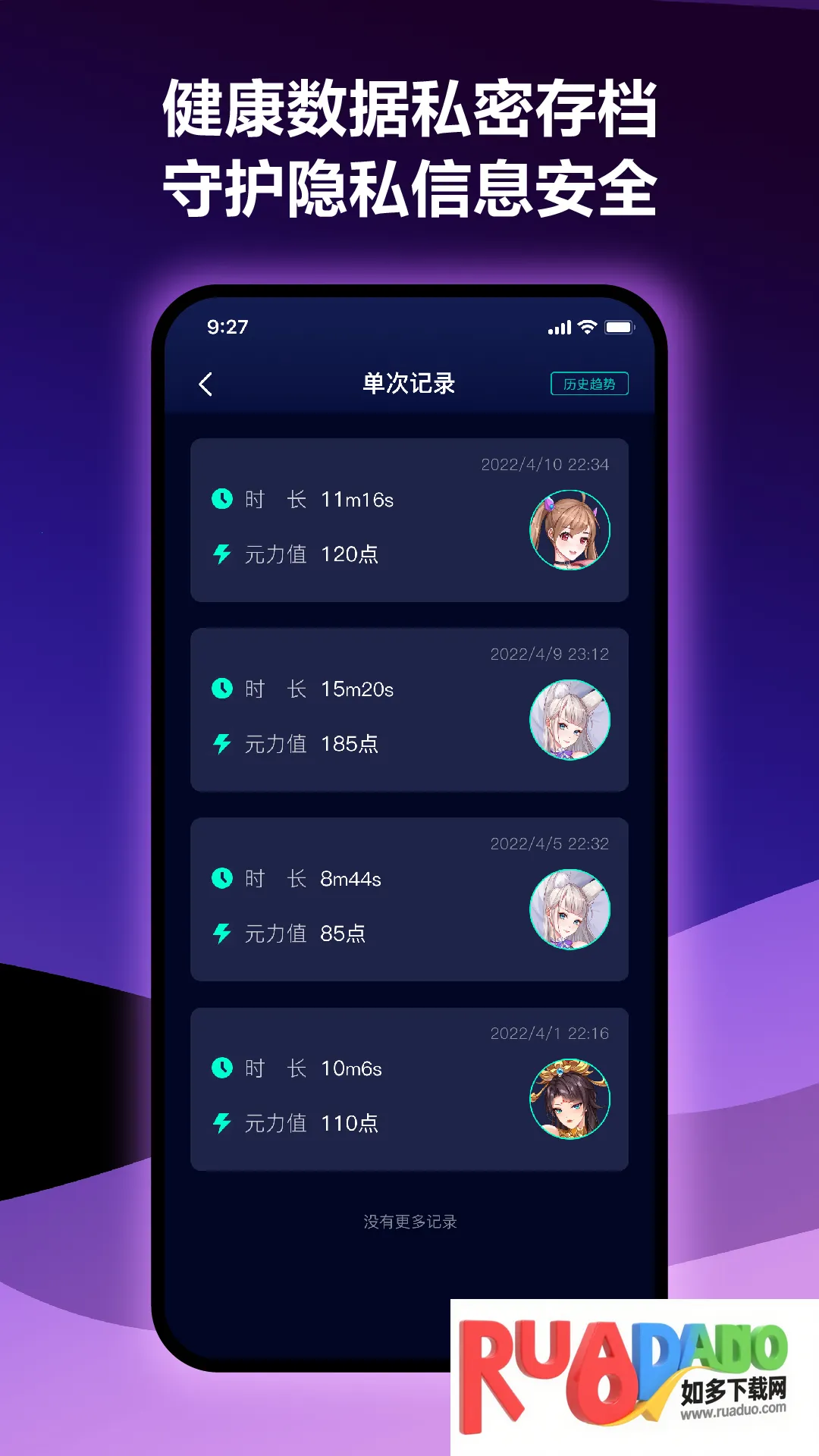 4、可实时数据记录,使用智能训练器时记录锻炼数据,形成可视化进步曲线,方便用户了解自身进步情况。