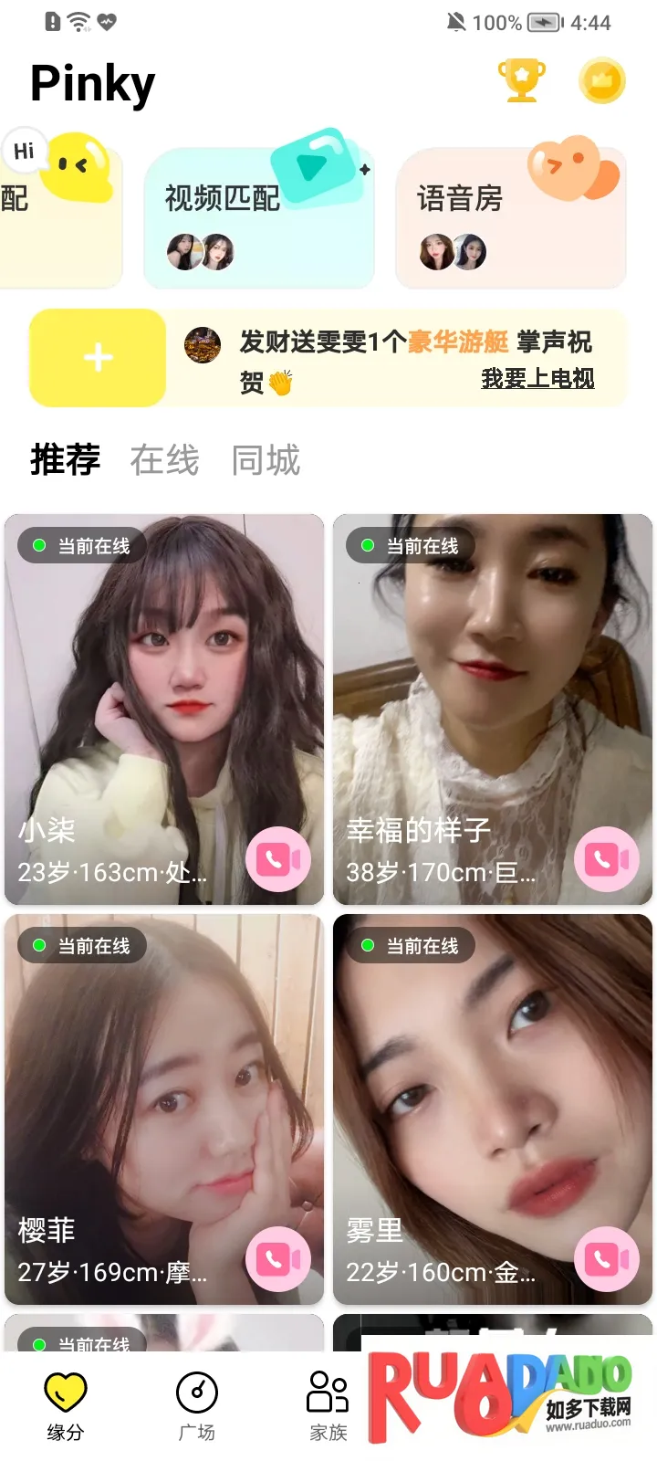 Pinky是备受年轻人喜爱的视频聊天交友APP,借数据分析精准匹配,有高效配对等功能。其亮点众多,如配对有迹可循、兴趣标签独特等。还能记录生活、参与社区活动,为用户打造真实有趣的社交环境。