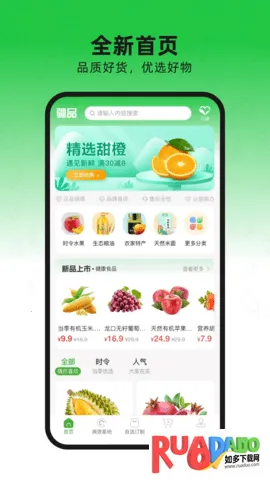2. 商品种类丰富,涵盖时令水果、生态粮油、有机蔬菜等,平台高频更新商品池。
