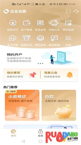 2. 拥有账户管理、转账汇款、贷款融资等多种企业银行服务。