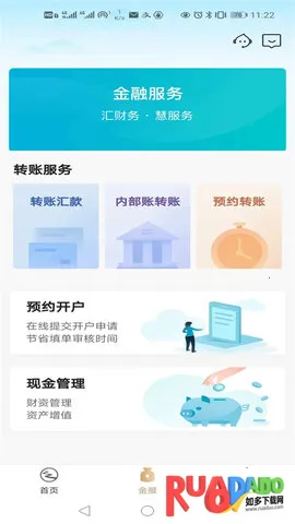 4、能预定银行开户,节约填单审批时间,还有多种转账服务。