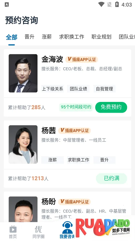 3. 推出咨询师诊断服务和教练辅导服务,上百位咨询师为您提供一对一服务,帮助职场人实现持续进阶。