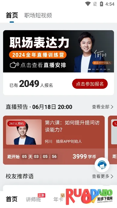 插座APP是一站式企业培训服务商,为20000家企业服务超百万职场人。有1对1专属顾问、百位顶尖讲师,提供专业化方案。课程资源丰富,多种服务栏目,支持多种播放模式,还有咨询师诊断和教练辅导服务。