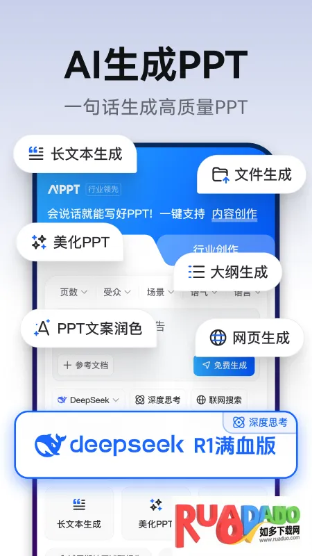 1. 结合前沿人工智能技术,输入提示词就能自动生成PPT。
