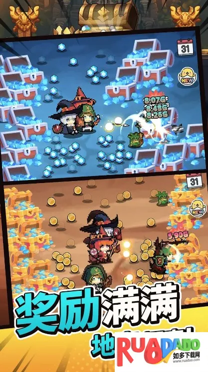 2、能收集各种英雄并结合独特技能组建自己的派对,凭借无限力量打败女巫的怪物。