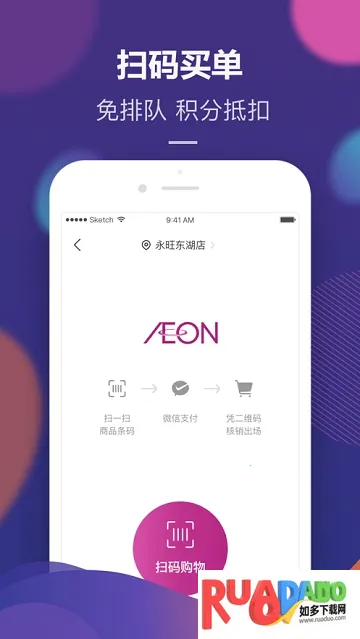 2. 线下门店自助收银,扫码购免排队,同步共享积分,享受智慧生活,提升购物效率。