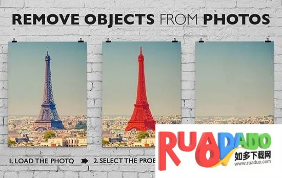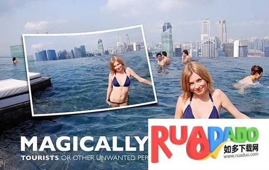 1. 可删除照片中不必要的人,如受游客来回跟踪破坏的照片,只需三个简单步骤就能使电线、游客等元素消失。