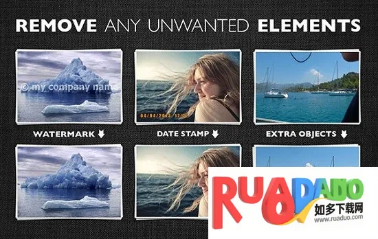 2. 功能丰富,能去除水印、日期戳记,删除多余对象,还可修复老照片、改善皮肤。