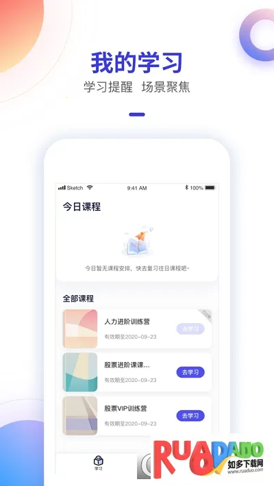 3. 设有今天的课程版块,清晰展示当天课程教学。