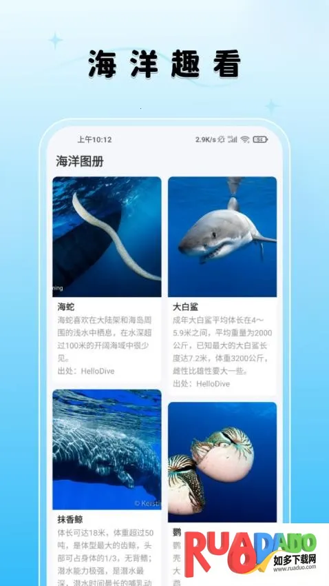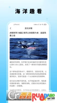 海洋趣看2026官方最新版本整合全球海洋生态数据等资源,每日更新专业资讯,有独家生物识别等技术,具备多种特色功能,构建完整知识传播生态系统,提升公众海洋保护意识。