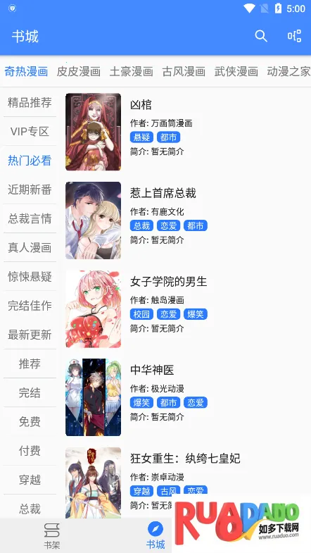 1. 漫画作品丰富多样,可按分类快速找到想看的。