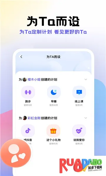 3. 能分享计划,与朋友一起制定,多人监督,打卡更有动力。