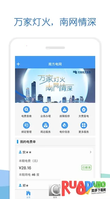 1. 服务便捷,支持电费查缴、用电新装、业务变更等各类用电业务办理,足不出户轻松搞定。