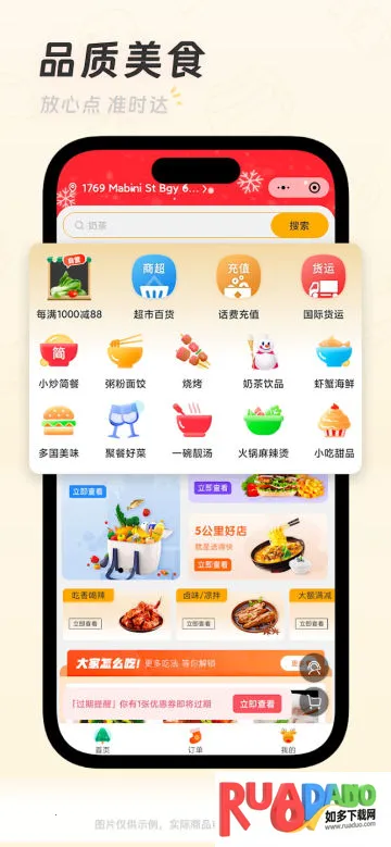 全中文服务界面简单易懂,24小时客服随时响应,解决各种问题。新人注册有优惠,如外卖无门槛立减、自营生鲜立减等。有了菲快送,在菲华人足不出户就能享受便捷生活,轻松解决生活中的各种需求。
