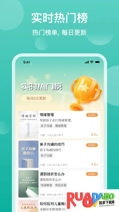 家长茶馆app是专为家长打造的家庭教育服务平台。提供多学科在线课程,有精准测评、专属计划等功能,能助家长提升育儿技能,与其他家长互动交流,助力孩子成长,还有丰富更新日志记录优化内容。