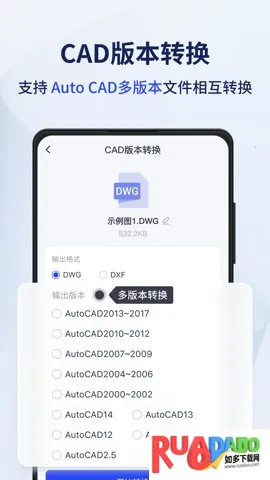 3. 功能全面:集成多种格式转换,能实现CAD版本转换、转PDF、转图片等。