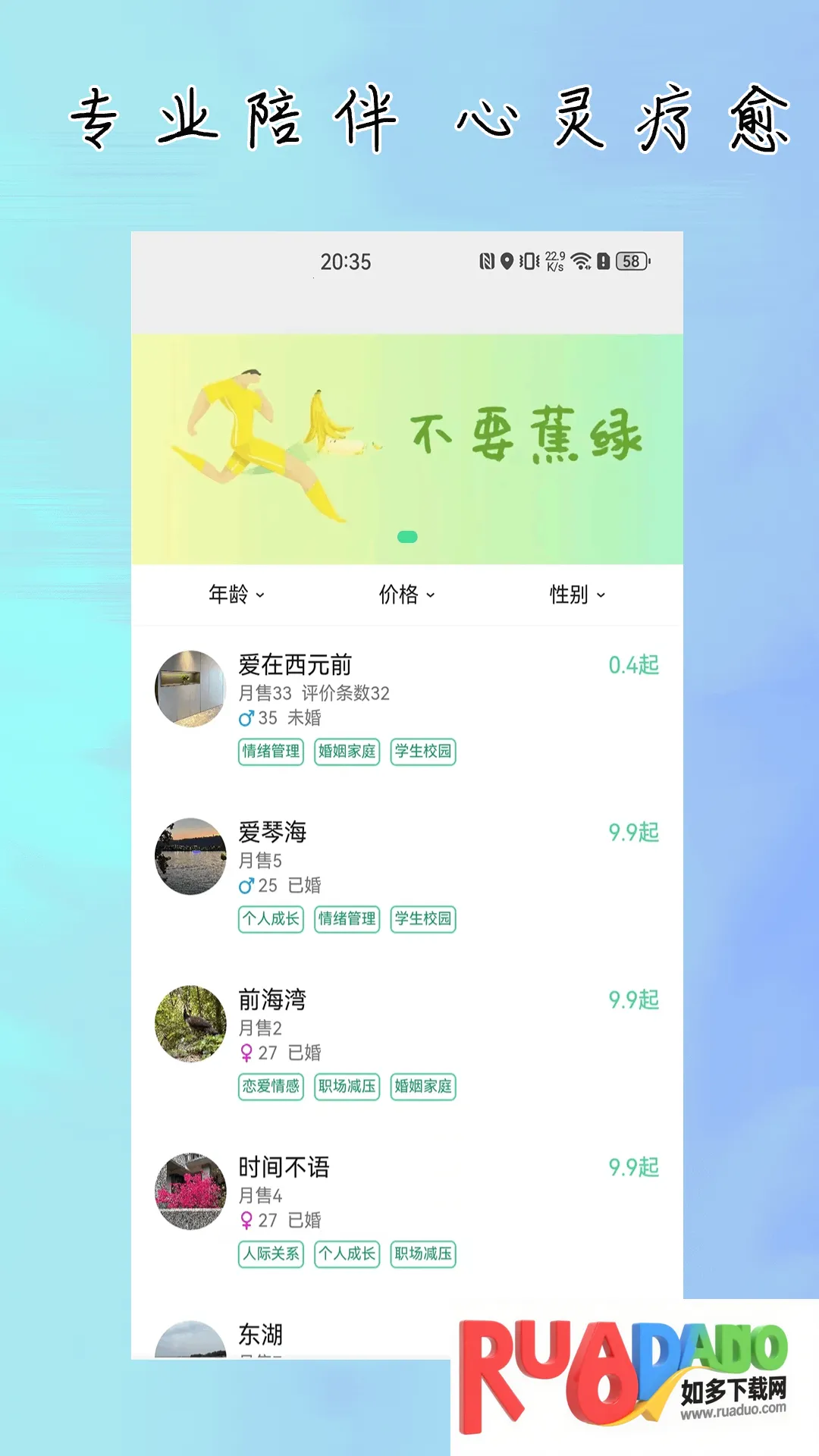 1. 专业心理咨询师在线,提供一对一语音通话服务,协助面对情绪问题,给出情感修复建议。