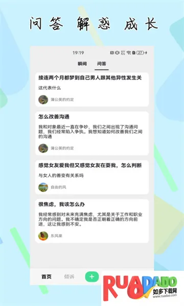 3. 关于人际关系等问题能提问,获咨询师和其他用户语音回复与建议。