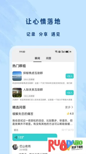2. 可自由记录与分享心情成长感悟,无论何种困扰,动态都会获关注理解。