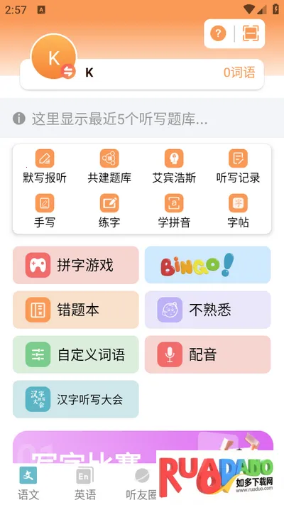 1. 快乐听写能根据知识点掌握情况自定义添加字词资源,便捷式听写。