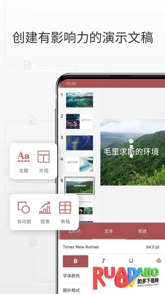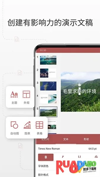 3. 支持多种格式文件,能创建、编辑、查看和保存多种办公文档及其他格式文件。