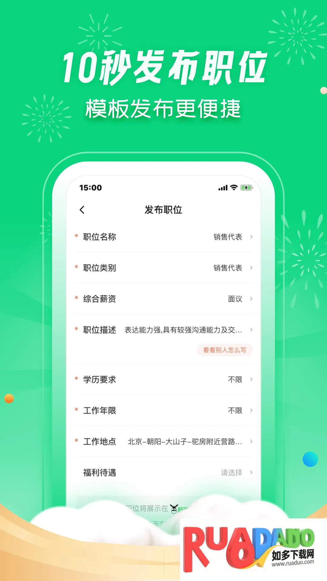 3. 操作便捷:如10秒发布职位,还有全行业个性化模板,简单操作可刷新置顶职位。